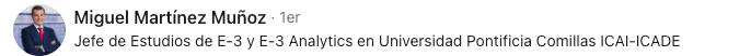 "Mario, ha sido alumno mio en el máster postgrado de RRHH en Comillas. Debo destacar de él su iniciativa y creatividad a la hora de resolver los problemas. Sabe trabajar en equipo y tiene ganas de aprender y crecer el ámbito de los recursos humanos."